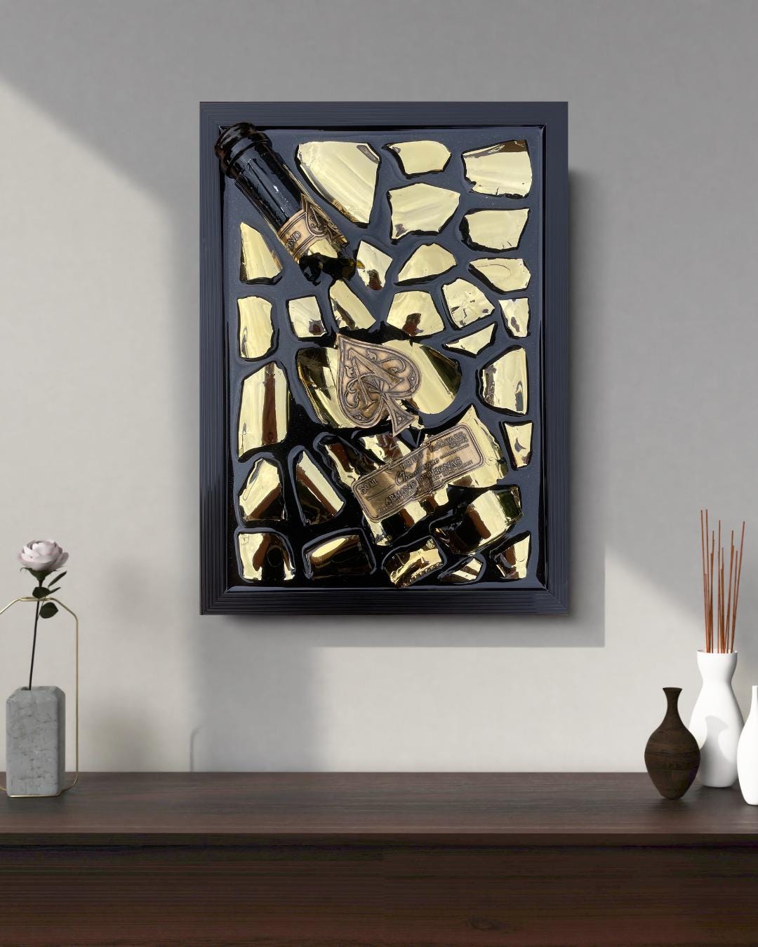 Gift this mesmerizing piece to someone special, encapsulating both thoughtfulness and the highest standard of luxury. The Broken Bottle Art Brignac XL is not just decor; it‘s a bold statement of taste and style, perfect for those who appreciate exceptional craftsmanship. Immerse your surroundings in grandeur and marvel at the transformative power of resin art, making every glance an indulgence.