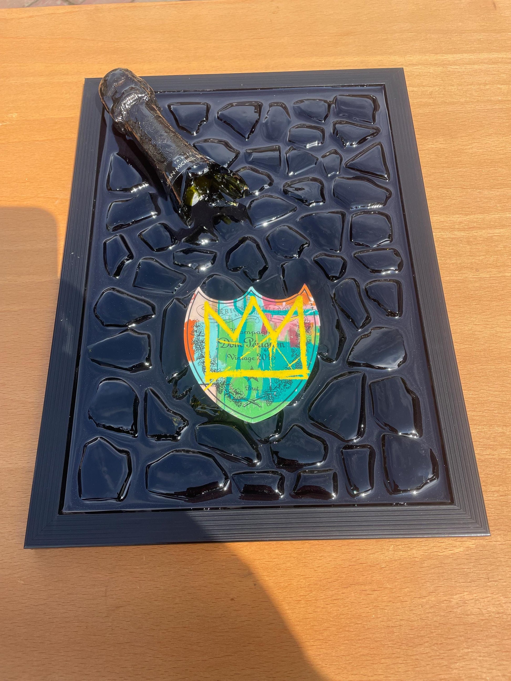 Elevate your home or office decor with this striking Broken Bottle Art Epoxy Artwork inspired by the bold and vibrant style of Michel Basquiat. This unique abstract piece captures the raw energy of shattered glass combined with dynamic color contrasts, making it a captivating statement wall decor that draws attention and sparks conversation.