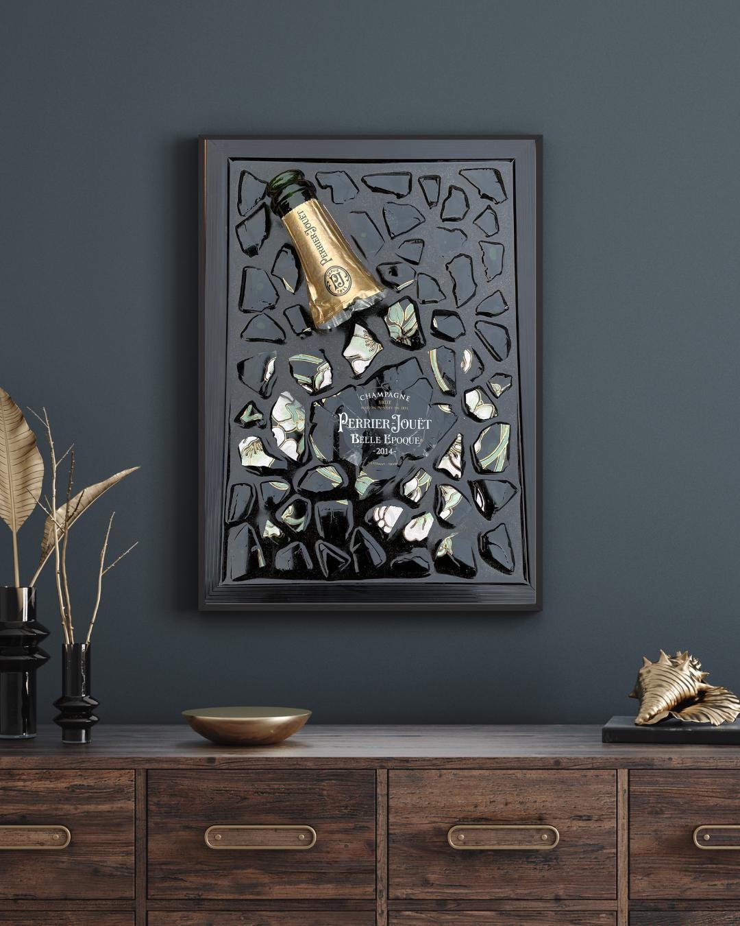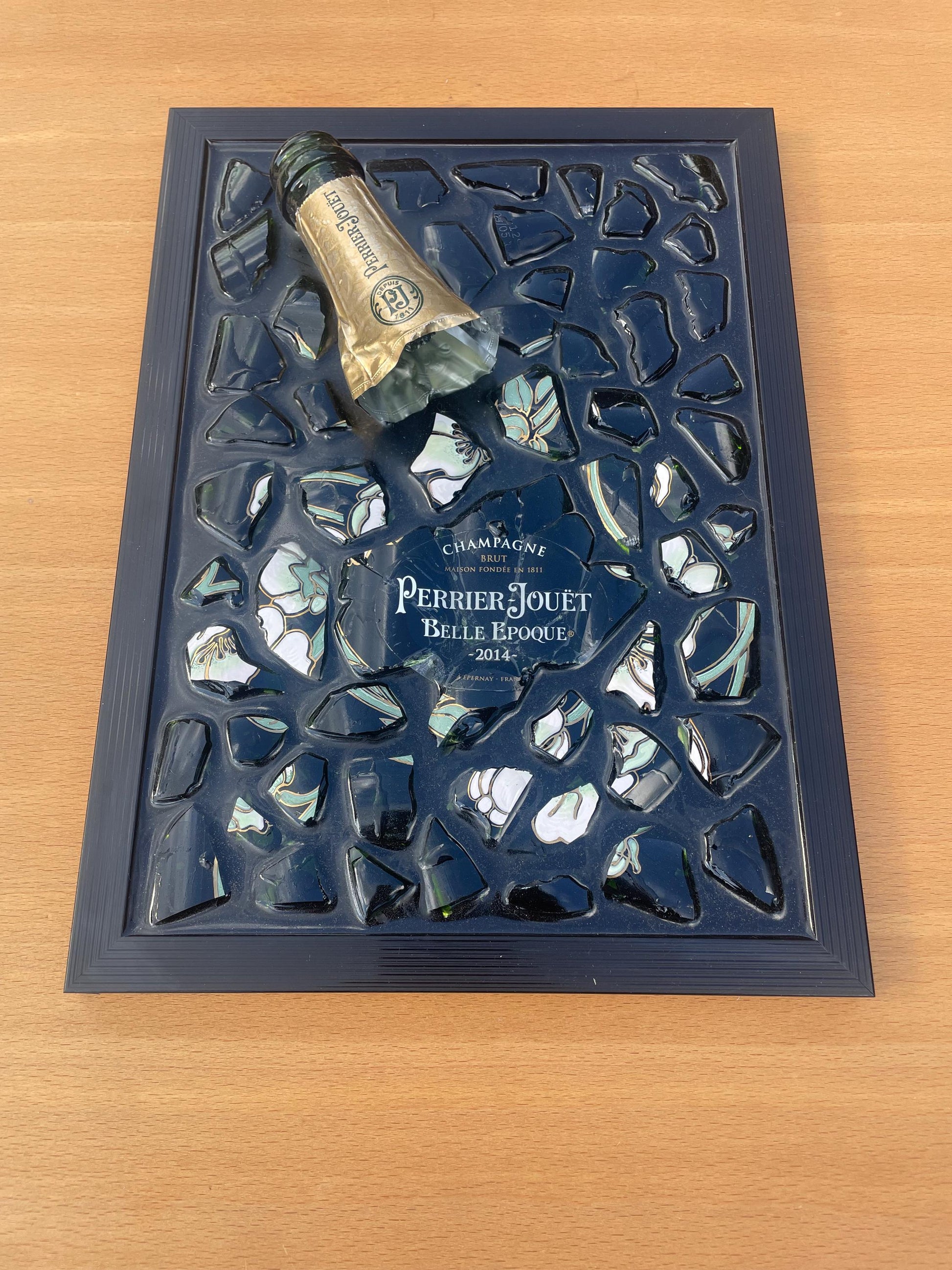 Broken Bottle Art Featuring Perrier-Jouët Champagne Bottle | Gifts for Him | Epoxy Resin Art | Unique Decor | Epoxy art