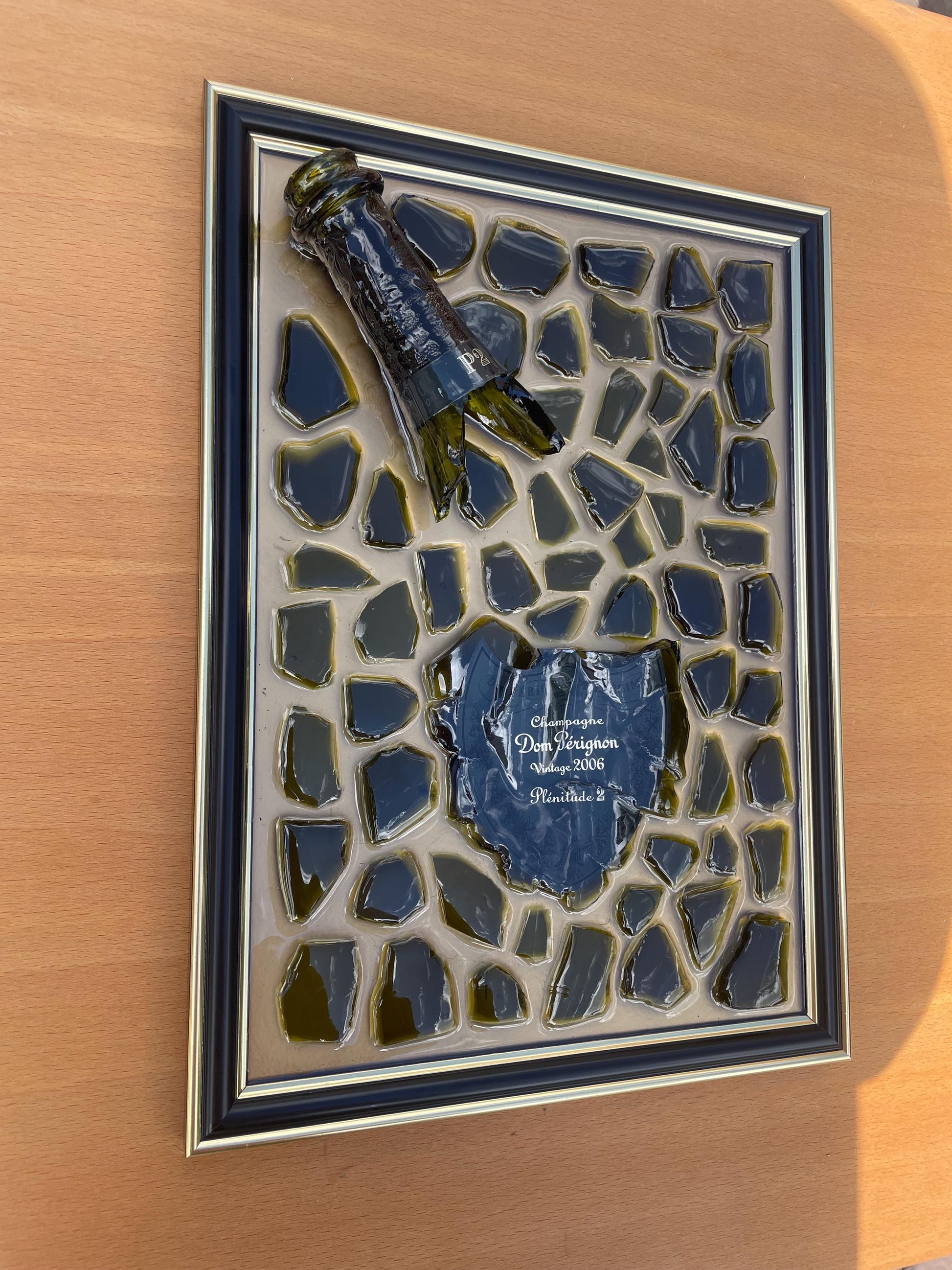 Broken Bottle Art Perignon P2 2006 Gold Epoxy Resin Painting Resinart Home Decor Unique Art Piece