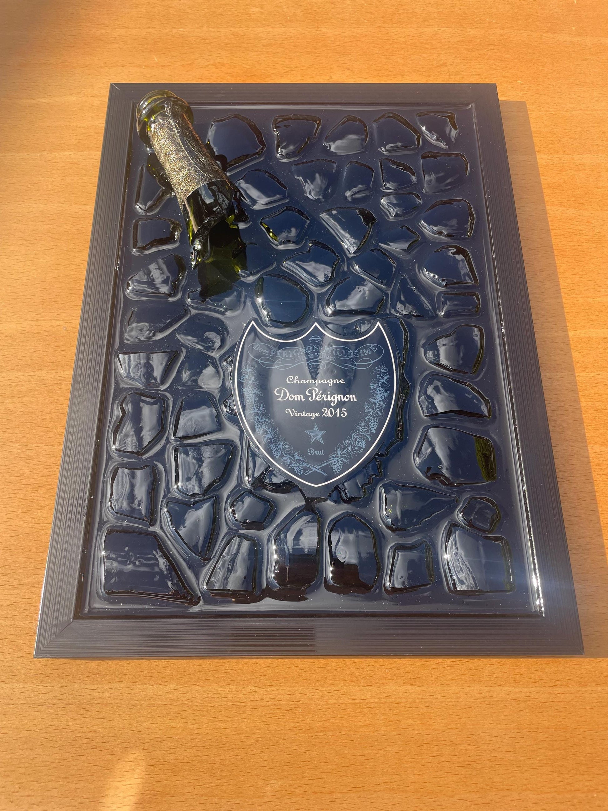 Broken Bottle Art | White Luminous 2015 Champagne Bottle | Luxury Epoxy | Resin Art | Gift for Him | Home Decor