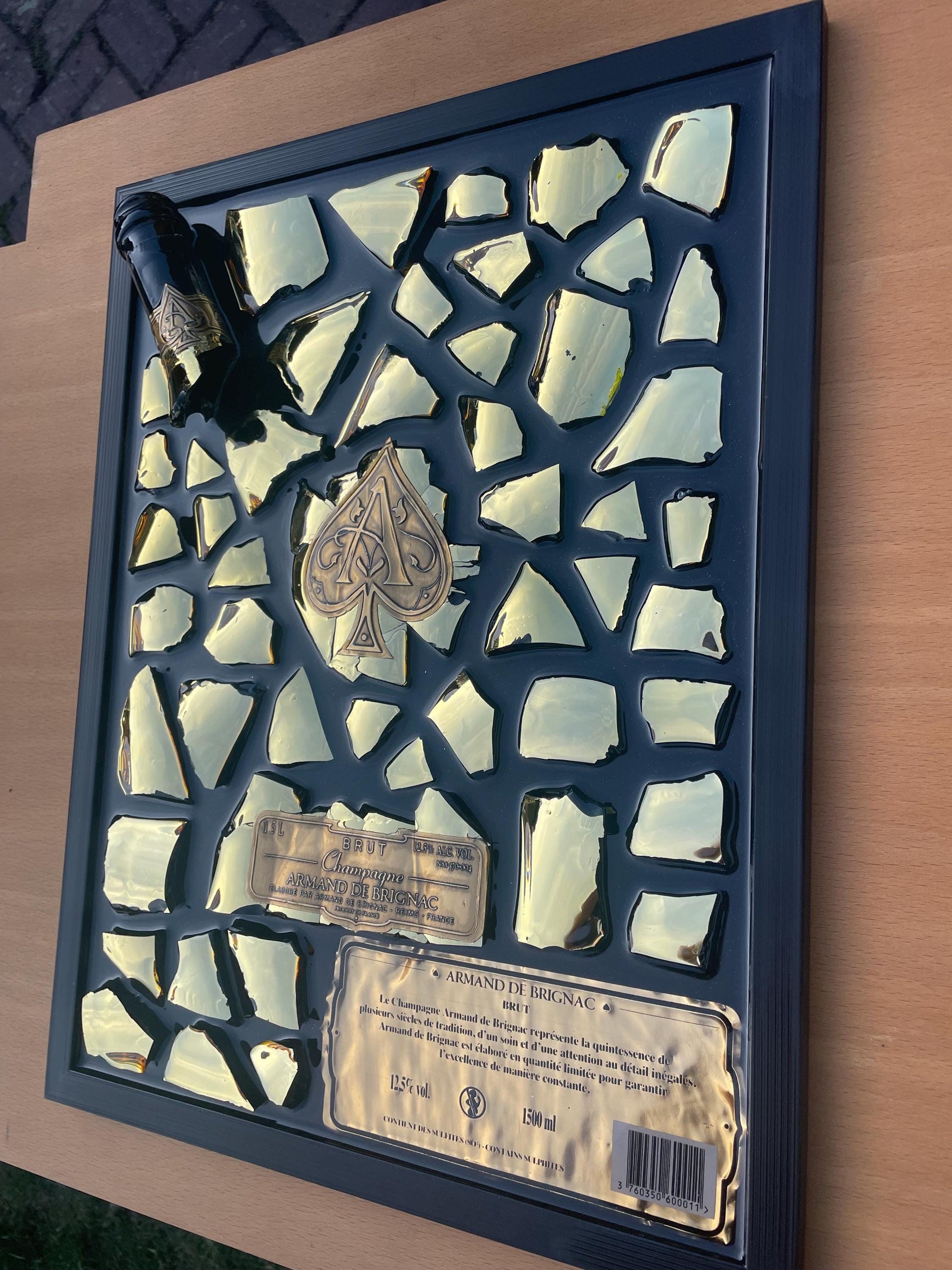 Gold Brignac Champagne 1,5L Epoxy Resin Broken Bottle Art Modern Wall Decor