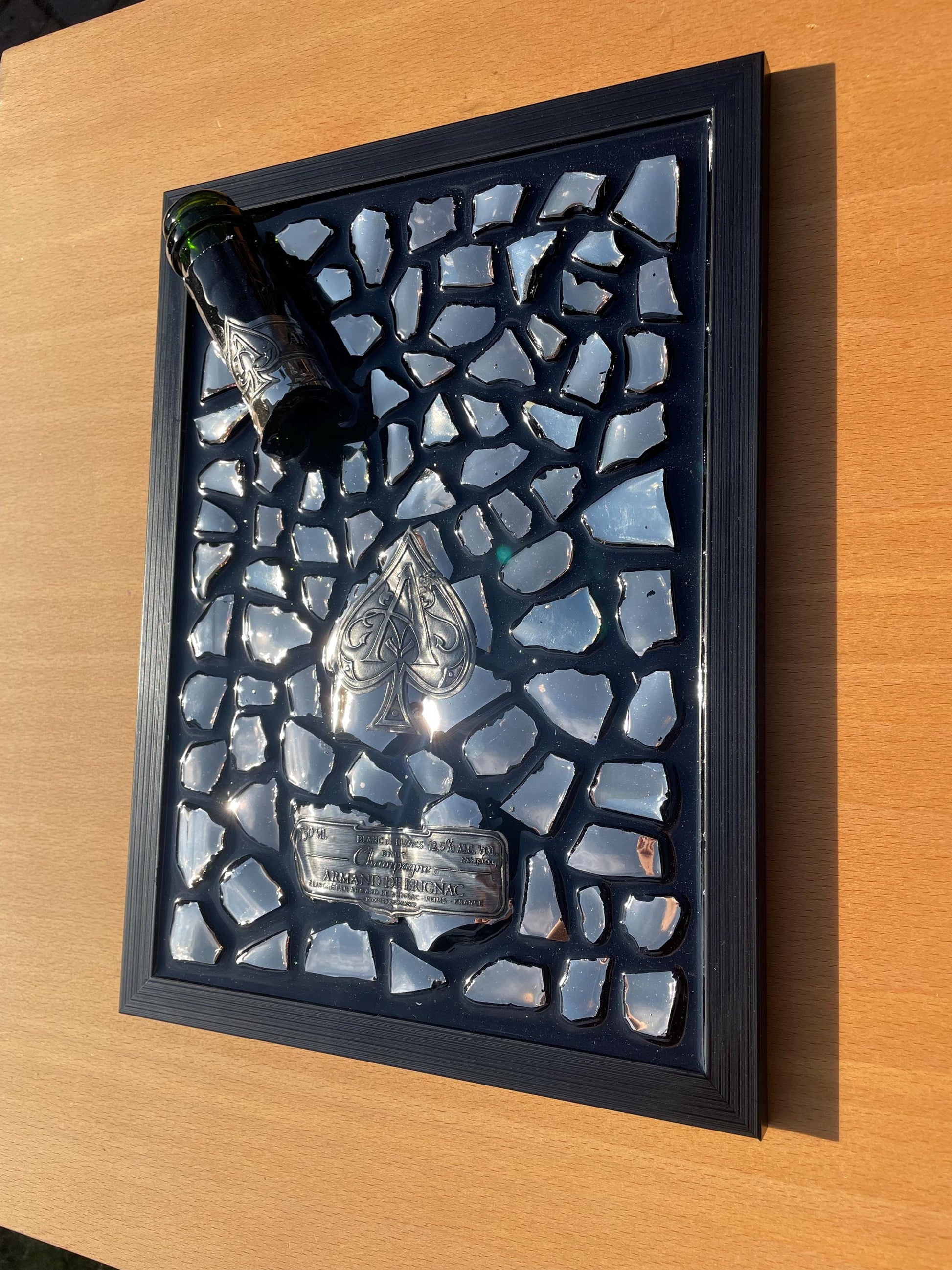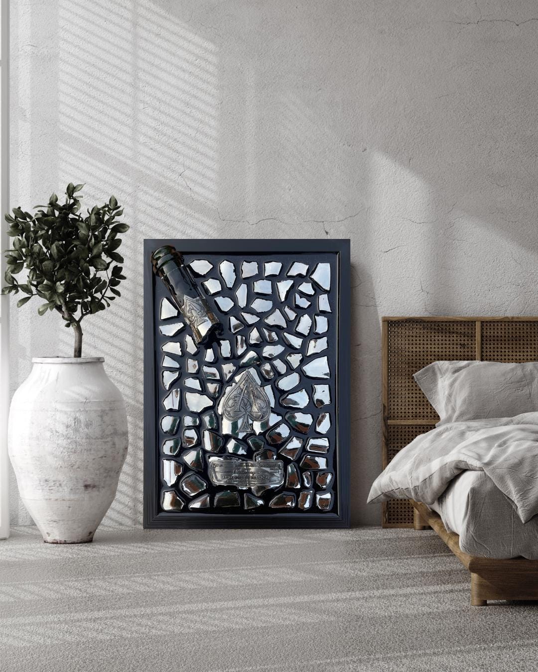 Luxury Epoxy Broken Bottle Artwork Featuring Brignac Champagne Bottle with Silver Tones | Gift for Him | Luxury Home Decor